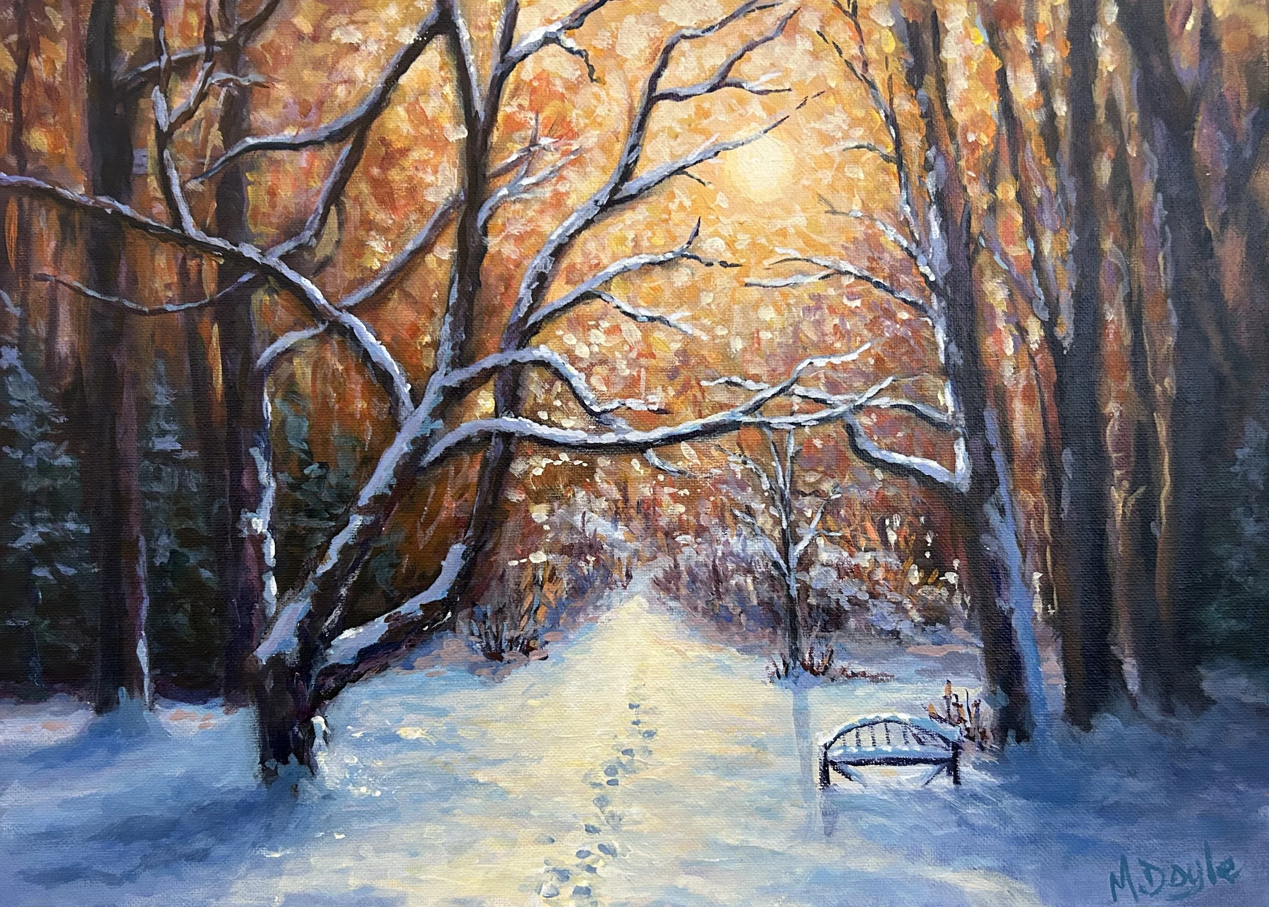 Sun-kissed Path in Autumn, 36x24, acrylic on canvas